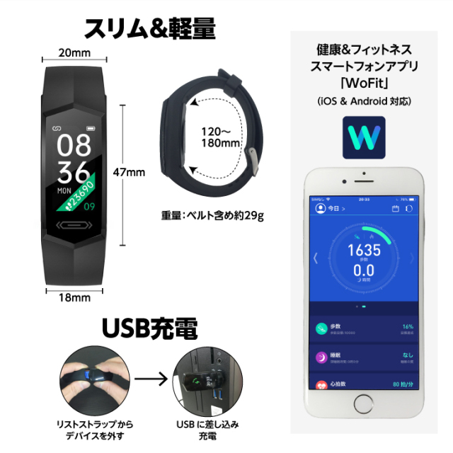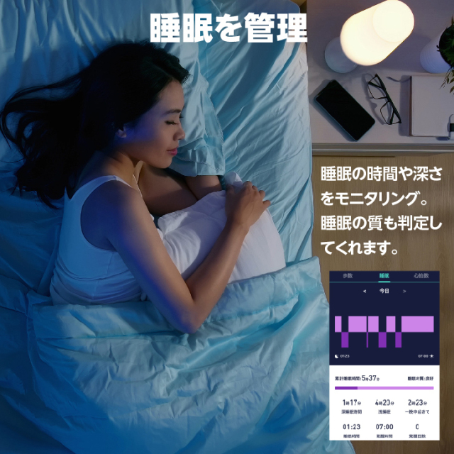 | 製品特徴 | 睡眠管理、運動管理、スマートフォンアプリで管理 |