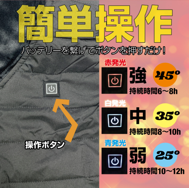 両肩、腰の部分にヒーター搭載