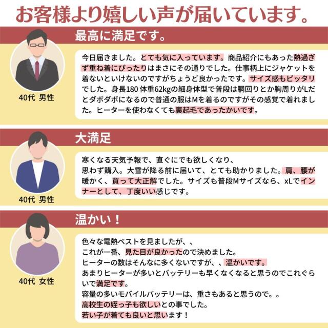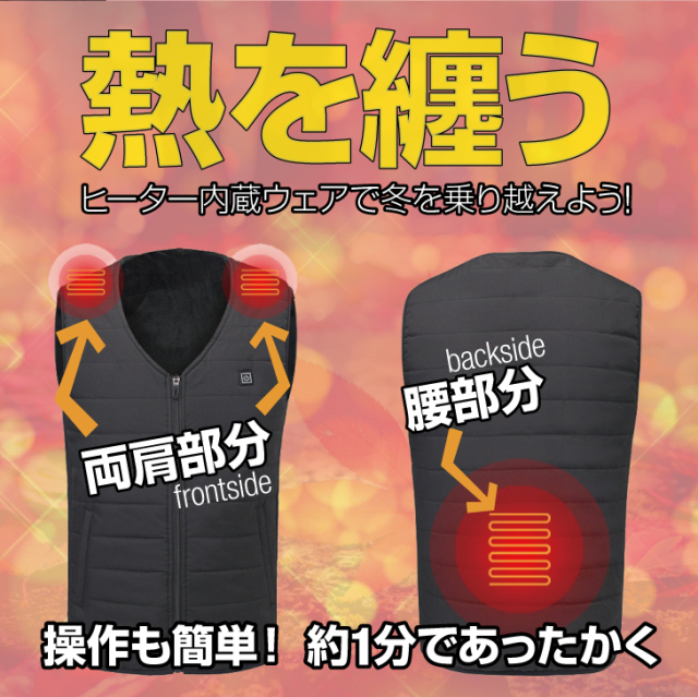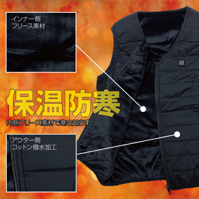 | 製品特徴 | 【寒さ厳しい中ぴったり商品】『電熱ベスト』 |